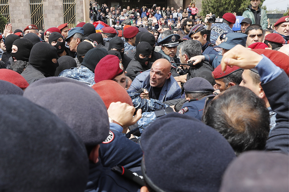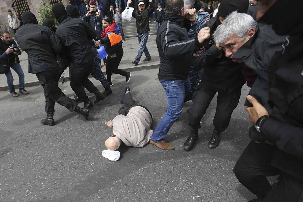 Кроме того, протестующие вступили в бой с полицией в центре города, в результате столкновений пострадали полсотни человек. Также активисты заблокировали здание мэрии Еревана, а лидер оппозиционной партии «Гражданский договор» Никол Пашинян объявил о начале «бархатной революции» в стране.