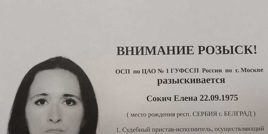 Тверской суд в Москве, куда он обратился с ходатайством признать решение инстанции в Белграде, распорядился найти его дочь и бывшую жену. Судебный пристав-исполнитель сообщил, что разослал запросы о местонахождении Елены Сокич и несовершеннолетней дочери в ФМС, ФОМС, Росреестр, Главное управление по вопросам миграции МВД России, ГИБДД, оператору связи и оператору бронирования и продажи билетов.