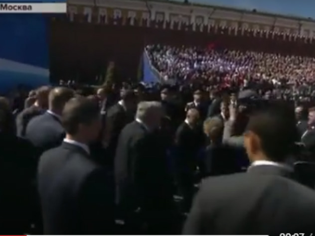 О произошедшем рассказал в своем специальный корреспондент «КП», журналист кремлевского пула Дмитрий Смирнов. Также эпизод попал в объективы многочисленных камер, в том числе и оператора «Первого канала», который вел прямую трансляцию с мероприятий 9 мая.