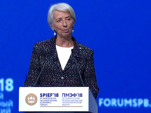 Директор-распорядитель Международного валютного фонда Кристин Лагард стала последним спикером, который выступал на пленарной сессии ПМЭФ-2018.