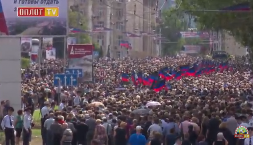 За автомобилем, буксирующим гаубицу с гробом, двигалась огромная толпа.