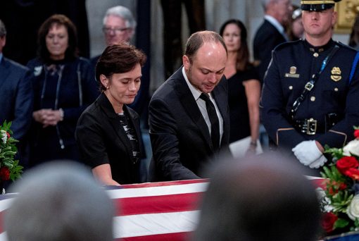 Дочь покойного, журналистка Меган Маккейн, не прятала эмоций, находясь у гроба отца.