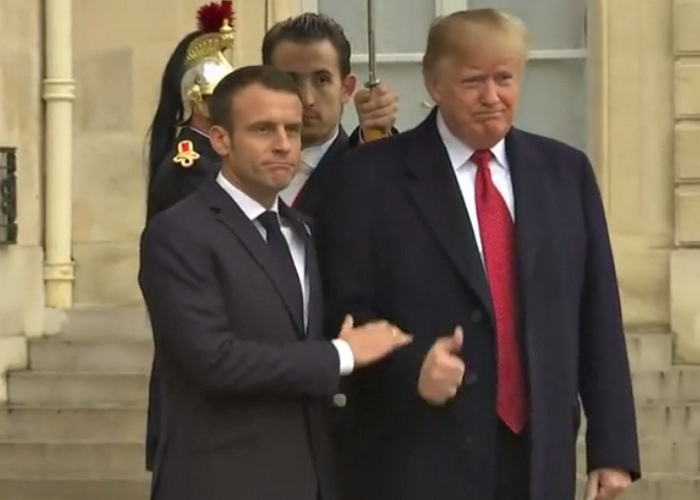Для чего же Макрону пришлось так явно использовать «язык тела» и тактильную дипломатию? Судя по всему, француз пытался разрядить слишком напряженную обстановку, а заодно несколько сгладить эффект от своих слов, сказанных накануне празднования 100-летия окончания Первой мировой войны.
