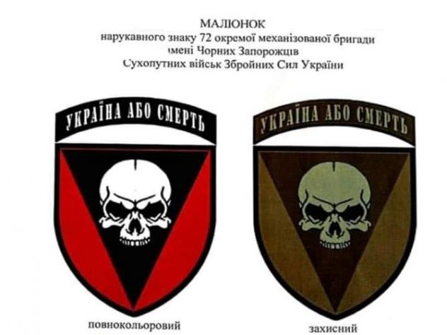 Главнокомандующий вооруженных сил страны Виктор Муженко в Фейсбуке** , что на форме украинских военных появится череп. Красно-черные нашивки с изображением мертвой головы будет носить 72-я механизированная бригада имени Черных Запорожцев. Под черепом размещена надпись «Украина или смерть».