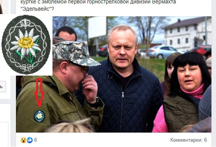 Такой же цветочек на своих рукавах носили бойцы 1-й горнострелковой дивизии вооружённых сил Третьего рейха.