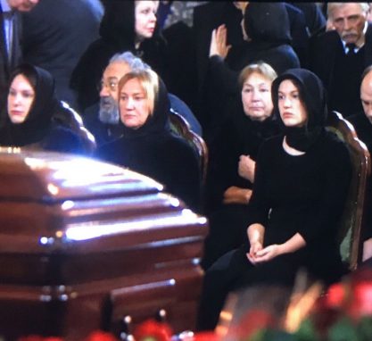 В храме Христа Спасителя находятся и близкие родственники покойного, а именно его супруга Елена Батурина. Вдова Юрия Лужкова выглядит сильно похудевшей и осунувшейся, внезапная смерть мужа стала для нее большим ударом. Она сопровождала супруга в Германию, где ему делали плановую операцию. Примечательно, что Лужкова хоронят в закрытом гробу, его не стали открывать даже в храме.