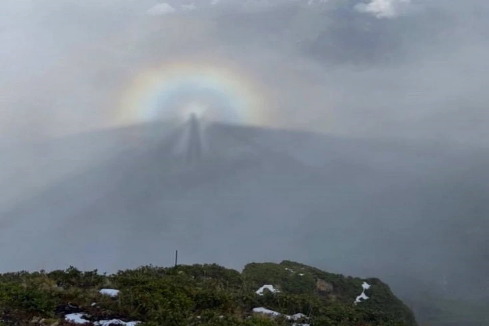 «Небо было затянуто тяжелыми серыми облаками, над вершинами гор стояла дымка, а в ней виднелись очертания человека. Когда туристы поднимались, казалось, что силуэт постепенно спускается с вершины горы им навстречу. Вокруг „тела“ было свечение, нимб переливался всеми цветами радуги», — сообщили журналисты издания.