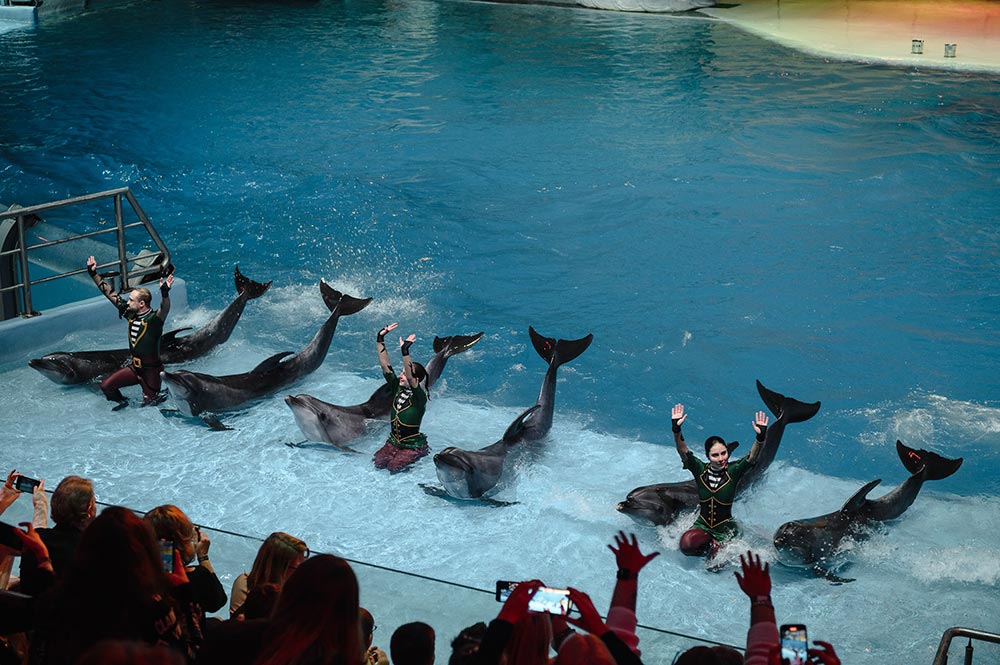 В шоу занято более ста артистов – актеры, музыканты, воздушные гимнасты, акробаты, жонглеры, танцоры и синхронистки. И настоящие звезды – неподражаемые обитатели «Москвариума».