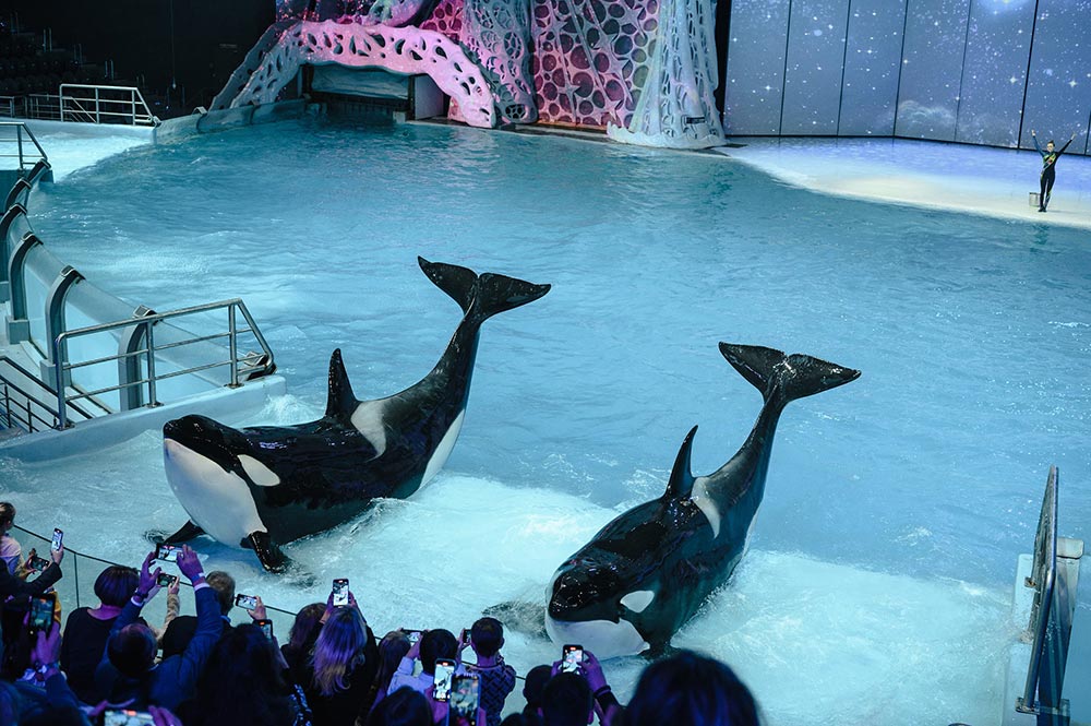 «Новогодний круиз» — уникальный мюзикл на воде, не имеющий аналогов в мире. В шоу участвуют морские животные, воздушные гимнасты, акробаты, жонглеры, певцы, танцоры и синхронистки. На головокружительной высоте над водной чашей канатоходец - рекордсмен книги Гиннеса заставляет замирать сердца зрителей, а всё представление сопровождает живая музыка в исполнении музыкальной группы. Гостей нового сезона шоу ждут потрясающие спецэффекты, а также новые элементы программы: кинетическая и лазерная инсталляции, новый цирковой номер на воздушных полотнах. Главными звездами шоу являются дельфины, морские львы, морж и косатки, которые предстают в необычном амплуа. Морские животные также порадуют зрителей новыми элементами в программе своих выступлений.