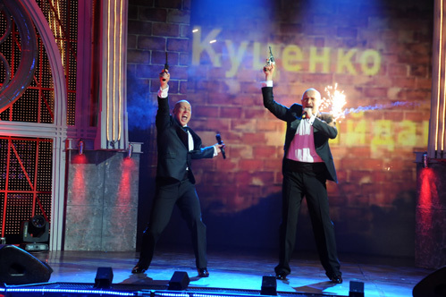 По задумке режиссера развлекательного шоу «Две звезды» на Первом канале Денис Майданов и Гоша Куценко в конце номера должны были стрелять в воздух. Правда, холостыми патронами.- Они пели попурри, - рассказали организаторы. - После песни «Гоп-стоп» артисты достают оружие и начинают палить в воздух.Никто не ожидал, что одна из пуль рикошетом попадет в плечо актера Гоши Куценко. Хоть по лицу Куценко и было понятно, что в него попала пуля, сюжет досняли без второго дубля.
