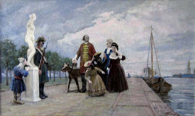 Так Петру удалось переодеть всю мужскую часть богатого населения страны в короткие кафтаны, узкие камзолы, чулки и парики.