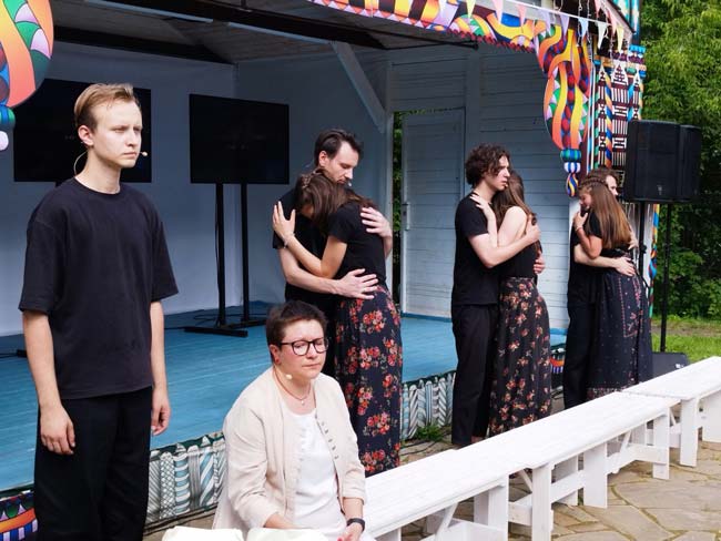 А в Усадьбе, под открытым небом представили премьеру Нового Театра — спектакль «Слезы молний» режиссера Сергея Глазкова. Слёзы молний — это документальный рассказ с театральной сцены о героях современной русской культуры: поэтах Игоре Караулове, Марии Ватутиной, Анне Ревякиной, легендарном Юрии Кублановском, музыканте Петре Лундстреме, а также о погибшем поэте, воине Донбасса Игоре Граче и философе Дарье Дугиной. Чтецами выступили народный артист России Валентин Клементьев и Амина Синагатуллина. Стихи Игоря Грача и Дарьи Дугиной звучали под скрипку Петра Лундстрема. Это был разговор со зрителем на серьёзные социально-политические и духовные темы языком современного героя — ровесника этого века, времени.