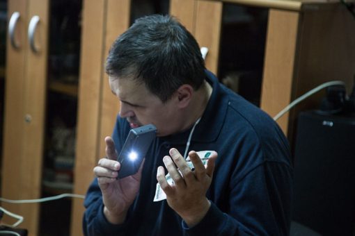 — У нас есть оборудованные рабочие места: компьютер с установленной программой JAWS, есть смартфоны с установленными программами экранного доступа. Человек приезжает, мы его учим пользоваться с нуля. В программу обучения входит полный комплект необходимых функций — пользование соцсетями, обучение звонкам, вводу номеров в записную книжку, работа с электронной почтой, со скайпом и другими программами. По окончанию трехнедельного обучения люди сдают экзамены. Телефоны на время обучения мы предоставляем, но многие люди, как только у них начинает получаться, приобретают себе свои устройства. Обучение разделено на 3 этапа — когда человек обучился элементарному уровню, он может приехать на вторую ступень повысить свой уровень знаний, затем на третью. Ну и последний этап — это спутниковая навигация. Когда люди уже овладели сенсорным устройством, они могут поставить разработанное с участием КСРК навигационное приложение и пройти практику его использования с выходом на самостоятельные маршруты, по которым они раньше не ходили и не ездили.