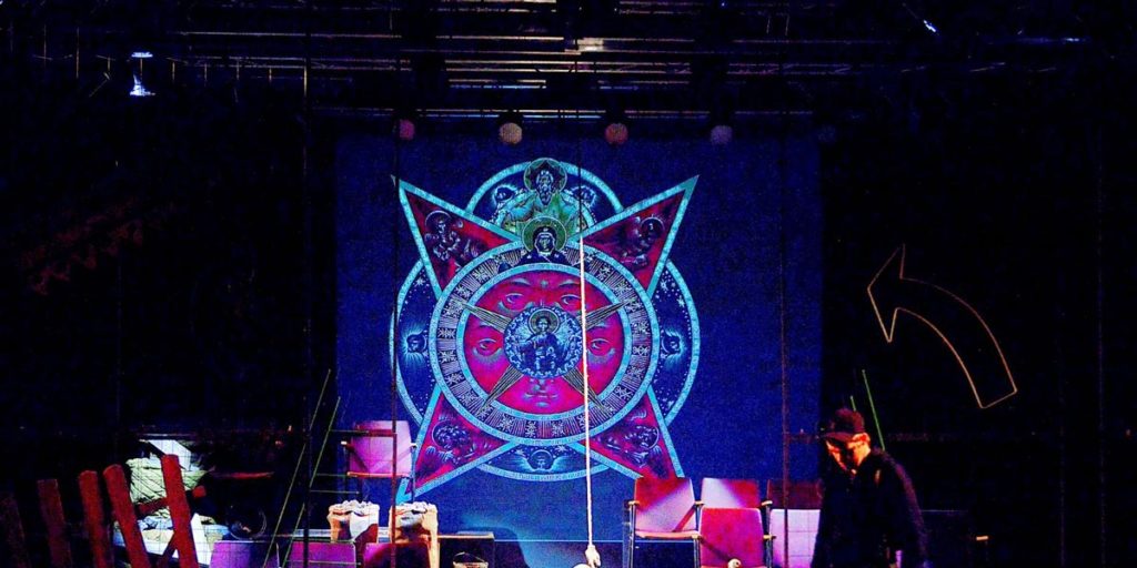 Основной конфликт спектакля я сформулировал как «рыбий глаз или божественное око». Конфликт этот раскрывается в обнаружении целого ряда подмен, которые, в свою очередь, и являются основным механизмом действия бабы Доры, олицетворяющей в пьесе древнее, как мир, зло.