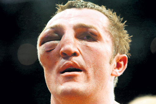 В боксе травмы и ушибы - обычная вещь. Однажды в пылу борьбы Майк Тайсон даже ухо откусил своему сопернику. Но гематома, которая выросла на лице Дениса Лебедева в поединке с Гильермо Джонсом, просто испугала зрителей. Она появилась у российского боксера еще в первом раунде, а к концу боя на Дениса было страшно смотреть. Его правый глаз заплыл, а лицо представляло собой сплошное месиво. В итоге Джонс победил техническим нокаутом. Однако вскоре победу у чемпиона из Панамы отобрали - он попался на допинге.
