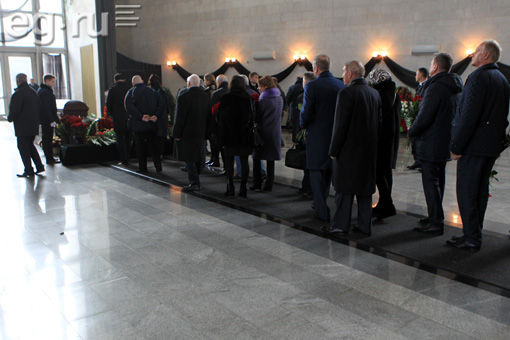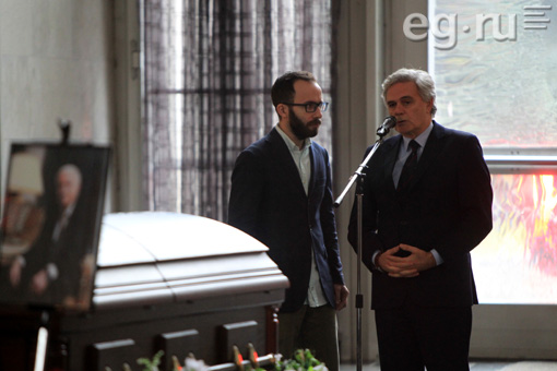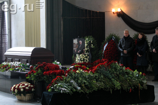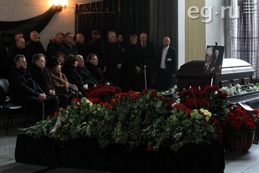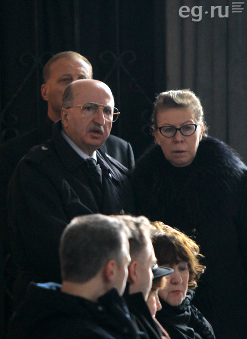 В траурный зал Троекуровского кладбища столицы пришли бывший директор ФСБ Николай Ковалев, крупный бизнесмен Давид Якобашвили, председатель Комитета Совета Федерации по международным делам Константин Косачёв, журналист Эрнест Мацкявичус, председатель совета директоров «Амедиа ТВ» Александр Шенкман, продюсер Игорь Мишин, автор книг по психологии Владимир Шахиджанян и другие коллеги и друзья телеведущего.