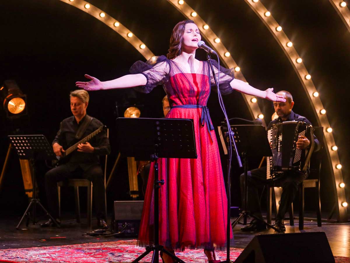 Живое исполнение джаз-бенда из пяти музыкантов, простое, но изящное оформление сцены и изысканное платье в стиле Dior от модельера Светланы Тегин — все это заставит забыть обо всех трудностях и проблемах. А песни еще долго будут крутиться в голове.