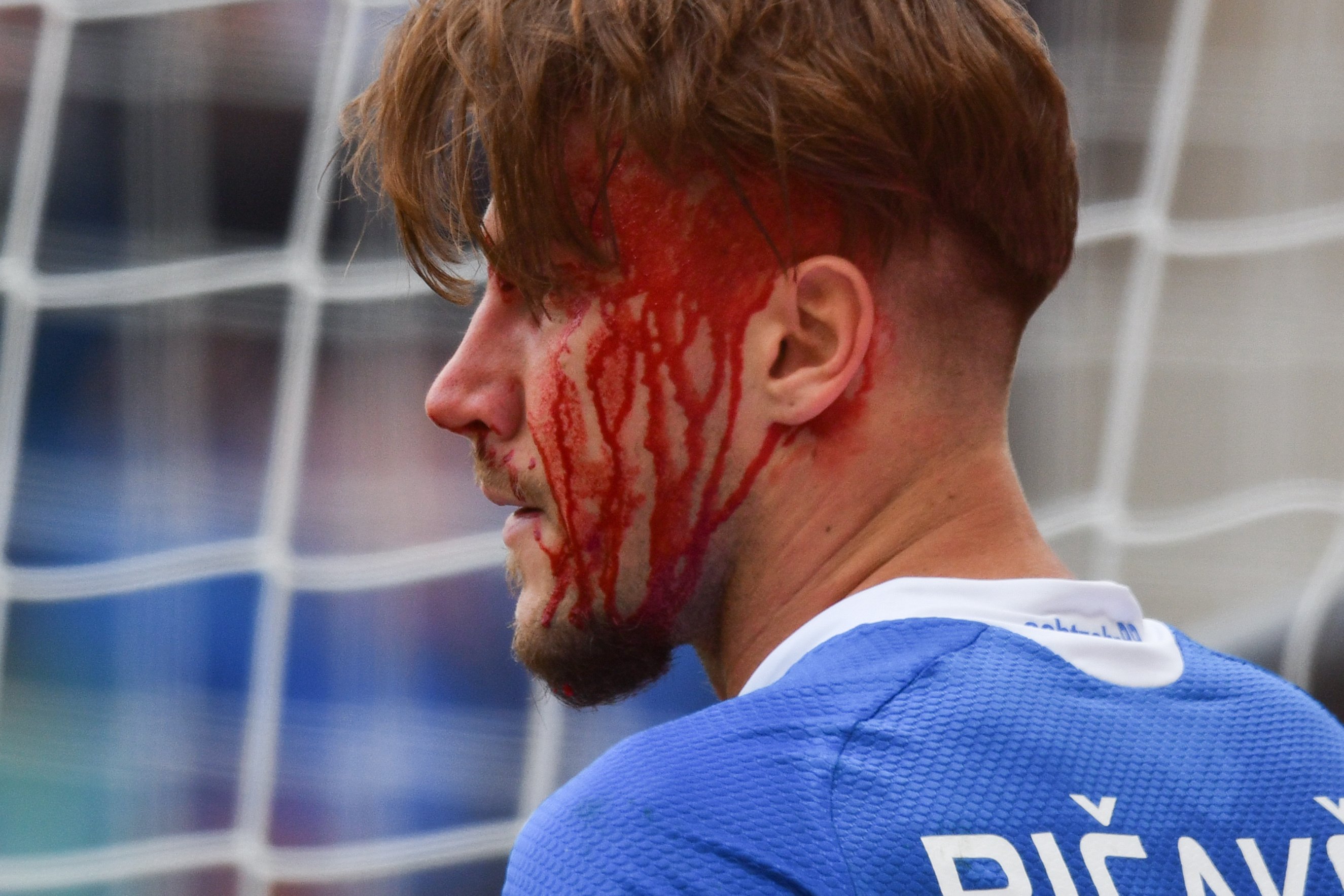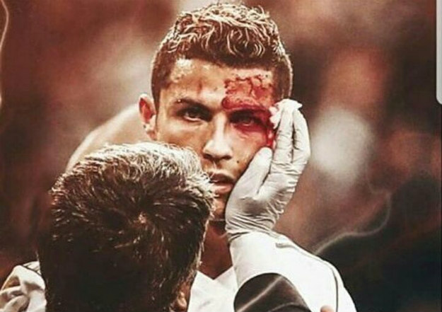 Считается, что хоккей более брутальный вид спорта, но иногда глядя на мучения футболистов, создается впечатление, что и футбол где-то рядом. Не так давно весь мир обошли кадры с рассеченной бровью Криштиану Роналду. Выглядело это действительно эффектно и страшно, сам португалец даже, не уходя с поля решил взять у сотрудника клуба смартфон, чтобы оценить последствия с помощью зеркала.