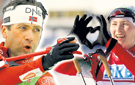 Пожалуй, больше всего в биатлонной тусовке обсуждают отношения знаменитого норвежца Уле-Эйнара Бьорндалена и трехкратной олимпийской чемпионки Дарьи Домрачевой. В день закрытия Олимпиады в Сочи они очень долго не отходили друг от друга, а после церемонии великий норвежец засветился в расположении сборной... Белоруссии. Он вроде пришел поздравить команду с небывалым успехом, но было понятно, что Бьорндален там появился ради Даши, которая, собственно, и завоевала для страны все три золотые медали. Позже папарацци засняли интернациональную пару в торговом центре финского городка Контиолахти. Дело было в девятом часу вечера, Уле-Эйнар и Даша держались за руки, а свернув за угол, восьмикратный олимпийский чемпион стал что-то нашептывать Домрачевой на ушко и взял ее за талию. А еще раньше, на этапе Кубка мира в Германии, норвежец поздно вечером выходил из коттеджа, где остановилась белорусская прелестница. Поначалу оба эту связь отрицали. Еще бы, ведь Бьорндален до поры до времени считался примерным семьянином. В 2006 году он женился на итальянке Натали Сантер и в одном из интервью как-то сказал: - Через много лет, когда я состарюсь, мне хотелось бы жить на берегу океана и слышать по утрам шум прибоя. А рядом на кухне будет хлопотать моя Натали. Мы, конечно, будем с ней вместе.
