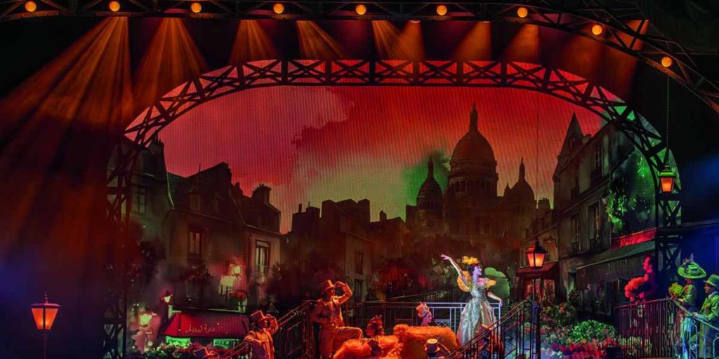 Отдельное удовольствие – мир ярких визуальных образов, совершенно преображающих сценическое пространство. Благодаря великолепным работам художника Максима Обрезкова, автора видеоконтента Ильи Старилова и художника по свету Ивана Виноградова в спектакль врывается красочный мир парижской богемы с залитыми солнцем улицами французской столицы, мастерской скульптора в мансарде, театром, сверкающим огнями и дирижаблем, парящим над крышами Монмартра. Знаменитые куплеты в исполнении Мадлен «Карамболина, Карамболетта!» художник и балетмейстер Ирина Кашуба превратили в яркое действо, которое вызывает подлинный восторг. Роскошные костюмы Екатерины Гутковской и Анастасии Пугашкиной довершают ощущения праздника.