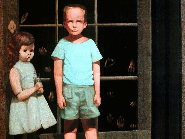 Смотреть на эту картину в самом деле жутковато — какие-то странные выражения лиц у изображенных на ней детей. Американский сюрреалист Билл Стоунхем создал картину по своей детской фотографии — там он запечатлен вместе с младшей сестрой. Однако полотно получилось каким-то зловещим: девочка больше похожа на куклу, вместо красивого пейзажа за спинами детей — стеклянная дверь, а за ней — детские ладошки, прижатые к стеклу. Художник пояснял: стеклянная дверь ведет в мир снов, а девочка-кукла — проводник в этот мир. На деле же картина сделалась «проводником» в мир безумия.