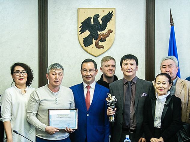 Документ авторам картины - Эдуарду Новикову, Семену Ермолаеву и Семену Аманатову - вручил глава Якутска Айсен Николаев. Деньги предназначены «для дальнейшего творческого развития».
