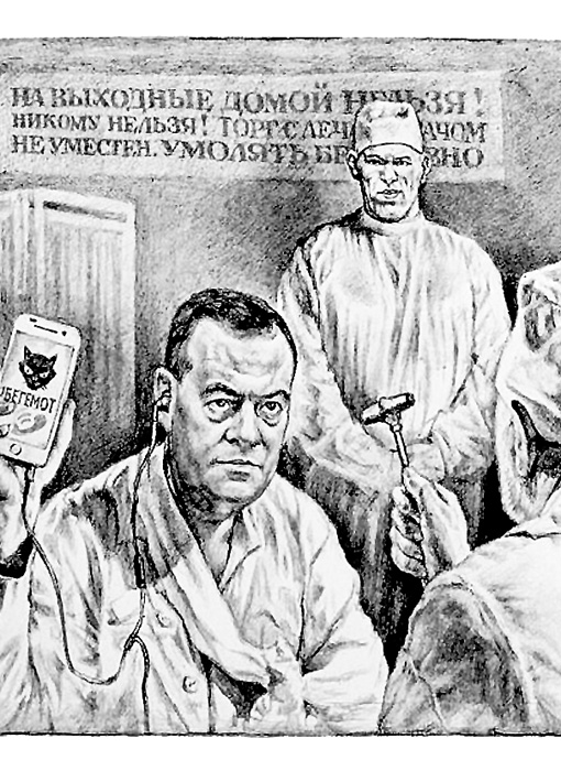 - «Мастер и Маргарита» - первая книга Булгакова, которую я для себя открыл. Я читал ее в 17 лет в библиотеке, поскольку роман не выходил в СССР отдельным изданием, а был доступен только как публикация в журнале с огромным количеством сокращений. А в 2016 году начал работать над графическими иллюстрациями к роману. Я назвал их альтернативными, потому что героями «Мастера» сделал современных политических и масс-медиа фигур. Но я не рисовал сатиру. Это метафора. Рисунки о жизни человека в абсурдном и странном мире.