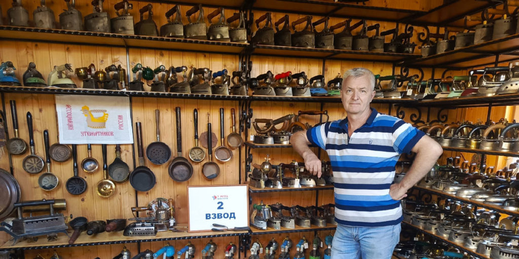 Владимир Горячев вспоминает: лет 30 назад увидел в журнале интервью с Михайловым. Александр Яковлевич рассказывал, что на даче в нише между комнатами разместил старинные утюги, самовары. Горячев загорелся: вот будет у него домик в деревне - тоже организует такой уголок. Вскоре на чердаке постройки, идущей на слом, нашелся первый экземпляр будущей коллекции. Со временем энтузиаст выпустил несколько каталогов по русским утюгам - угольным, спиртовым, с трубой в качестве воздушной заслонки, с автоматической защелкой и даже брошюру по поставкам под утюги - там тоже полно вариаций.