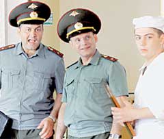 КАДР ИЗ СЕРИАЛА «СОЛДАТЫ»: замполит Староконь (слева) за словом в карман не лезет |
