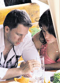 В Сочи популярный актер и телеведущий Оскар КУЧЕРА (урожденный Евгений БОГОЛЮБОВ) прибыл с красавицей по имени Юля. Влюбленные познакомились больше полугода назад и сразу стали жить вместе. Ходят слухи, что очаровательная брюнетка «в интересном положении». Но это ничуть не мешает ей по-прежнему наслаждаться жизнью.