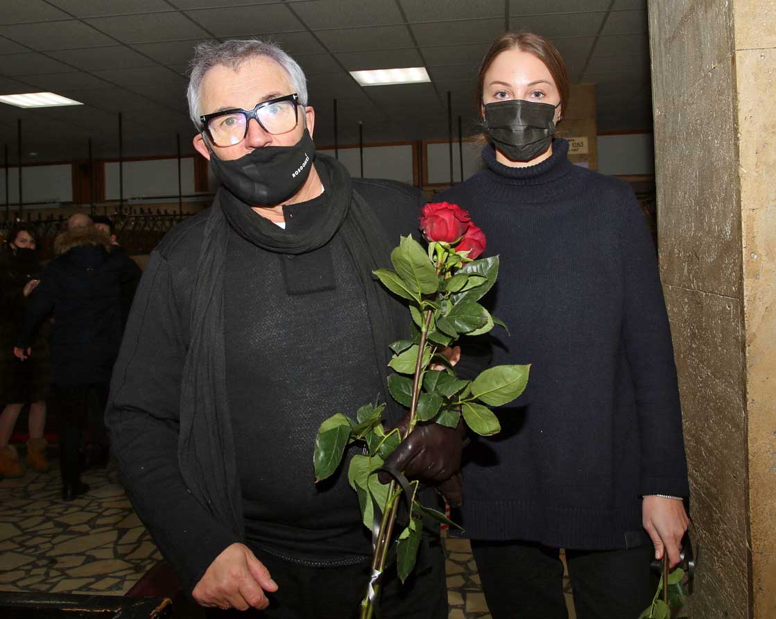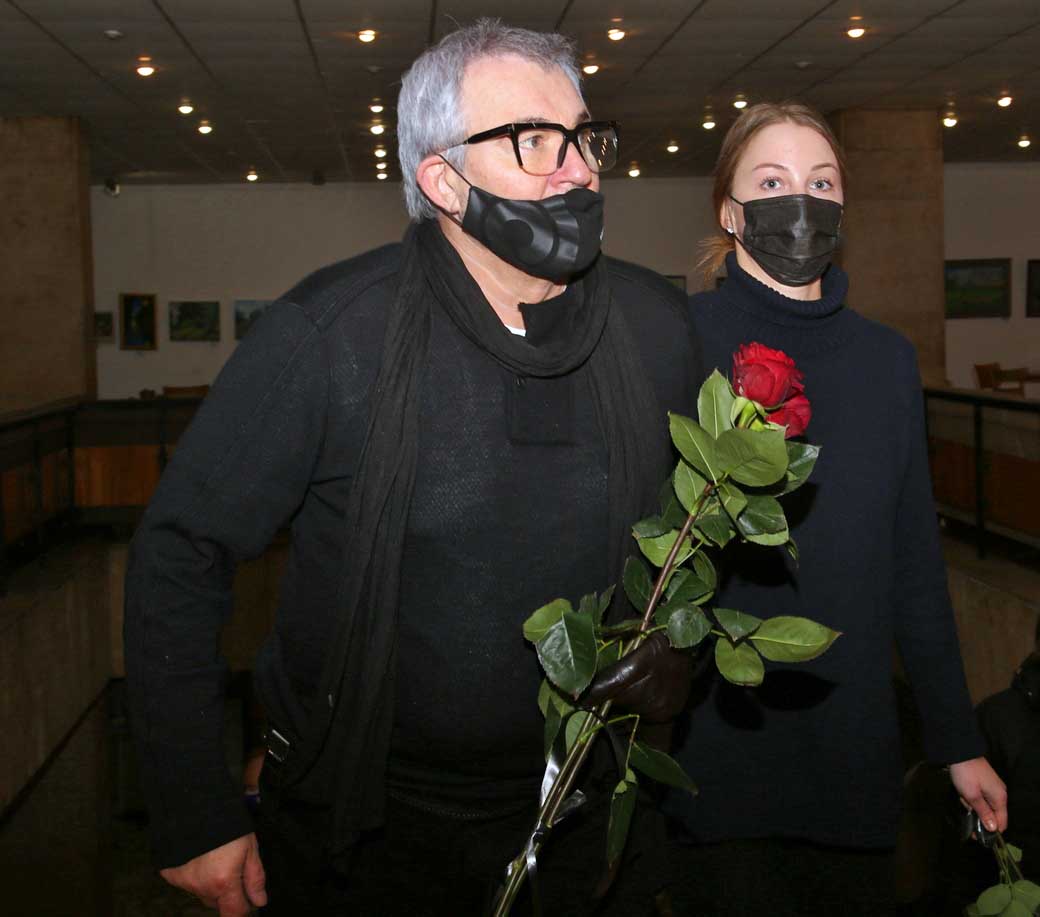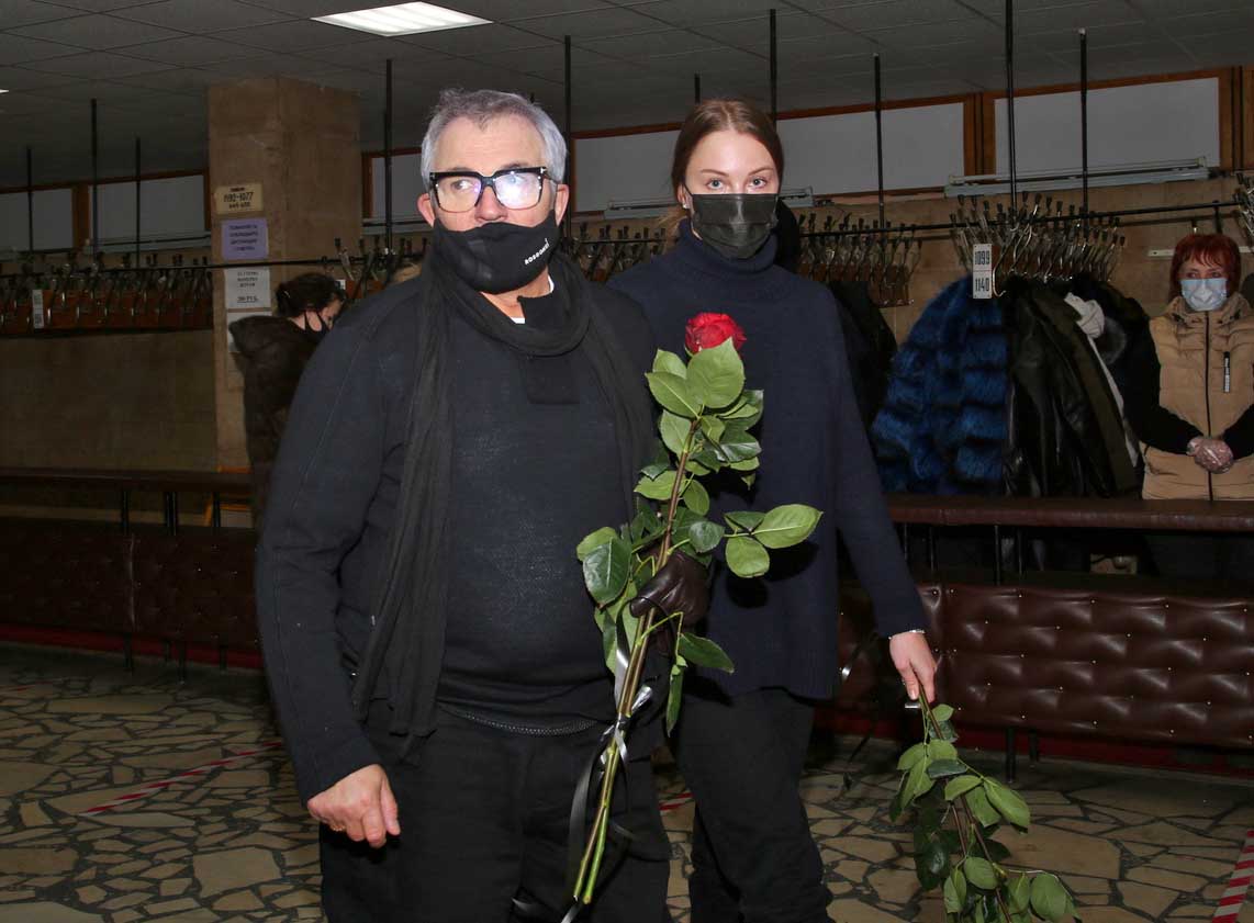 Не остались в стороне и телеведущий Дмитрий Дибров со своей молодой супругой Полиной. Пара прибыла к Дому кино под ручку. В отличие от многих отечественных знаменитостей, супруги ограничились покупкой лишь четырех красных роз на двоих, чтобы положить их к гробу Бориса Грачевского.