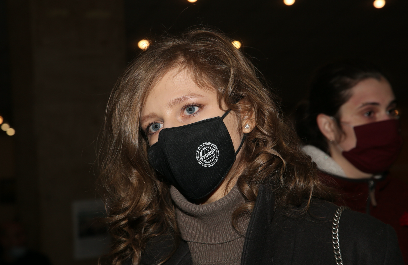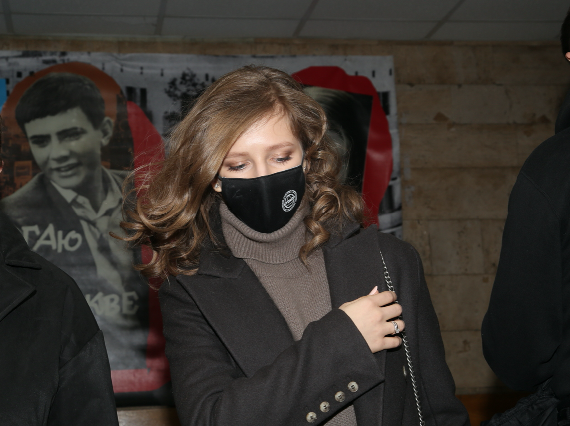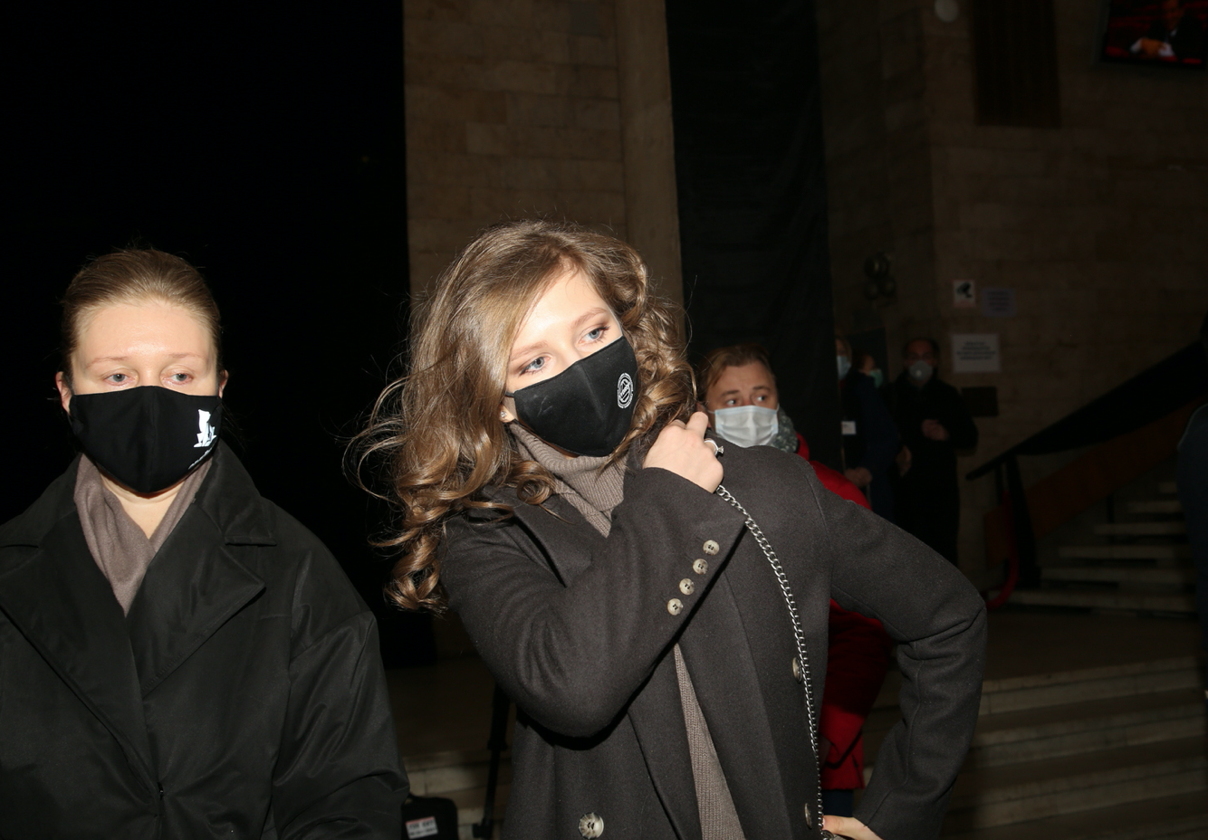 Артистка могла бы даже остаться незамеченной — лицо она спрятала под черной защитной маской. Но эффектные кудри выдали Арзамасову. Несмотря на скорбь, Лиза нашла в себе силы сделать укладку и легкий макияж.