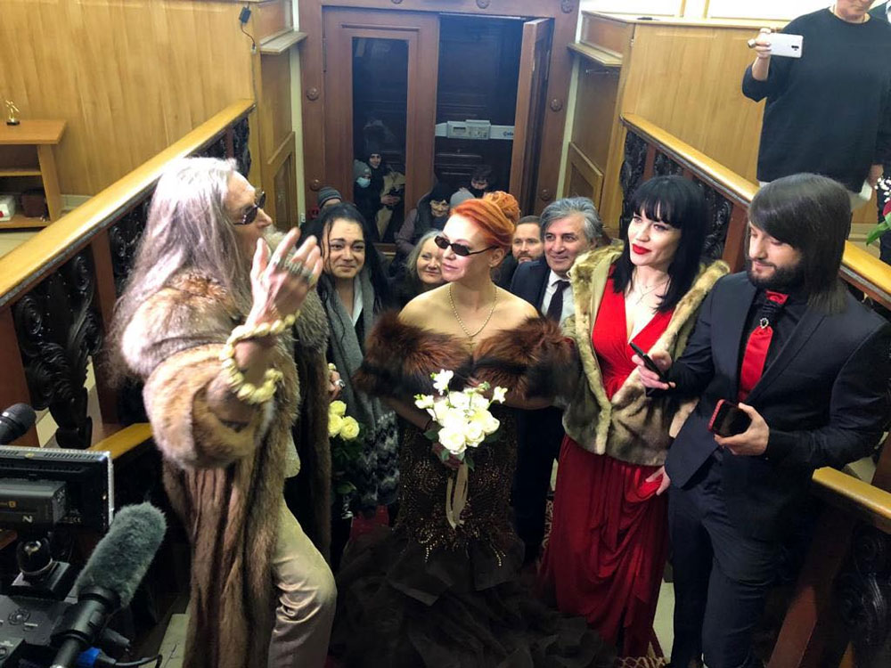 Официальная часть торжества состоялась в Грибоедовском загсе Москвы. Анисина выбрала для церемонии темно-коричневое платье в пол, сверху надев меховую накидку. Джигурда явился в загс в серебристом костюме.