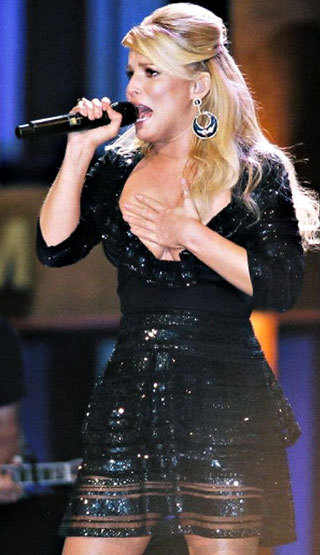 После того, как весной этого года жених Джессики - футболист «Dallas Cowboys» Тони Ромо объявил об их разрыве, певица выходит в свет исключительно в компании друзей. В последнее время блондинку все чаще видят в обществе ее парикмахера-стилиста. В надежде удержаться «на плаву» хотя бы в карьере Симпсон решила прибегнуть к испытанному методу - брать публику натурой. На одном из последних выступлений певица всячески привлекала внимание зрителей к своим огромным силиконовым имплантатам: то лапкой грудь погладит, то микрофон засунет в вырез декольте, а то и напрямую пальчиком укажет - вот же она, роскошная грудь. Любуйтесь!