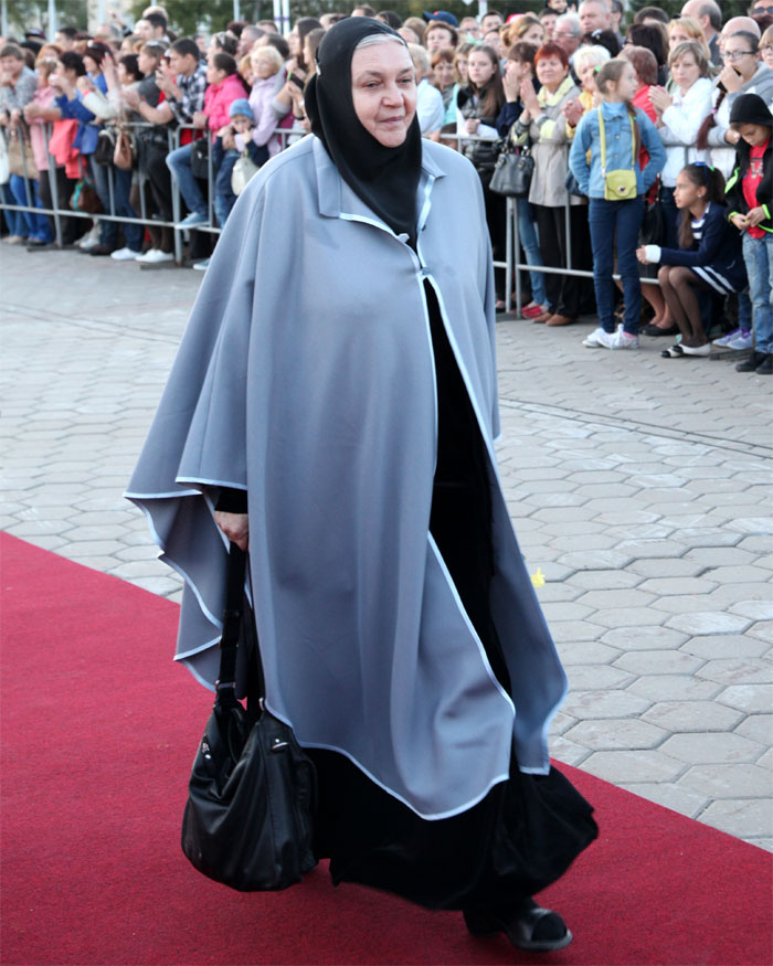 «С этим я часто сталкивалась, и к психическим болезням иногда, когда человек не может выйти из какого-то образа, который он зафиксировал, когда-то это было звездным образом. А вот он тянет-тянет, уж прошли годы, уже морщины, кто-то уж парализован, как Наташа Кустинская, бедненькая, Царство ей Небесное. А у нее все это зафиксированный образ. Надо быть живым человеком. Актер тогда хорош по-настоящему, когда он при этом живой человек», — объяснила свою точку зрения инокиня.