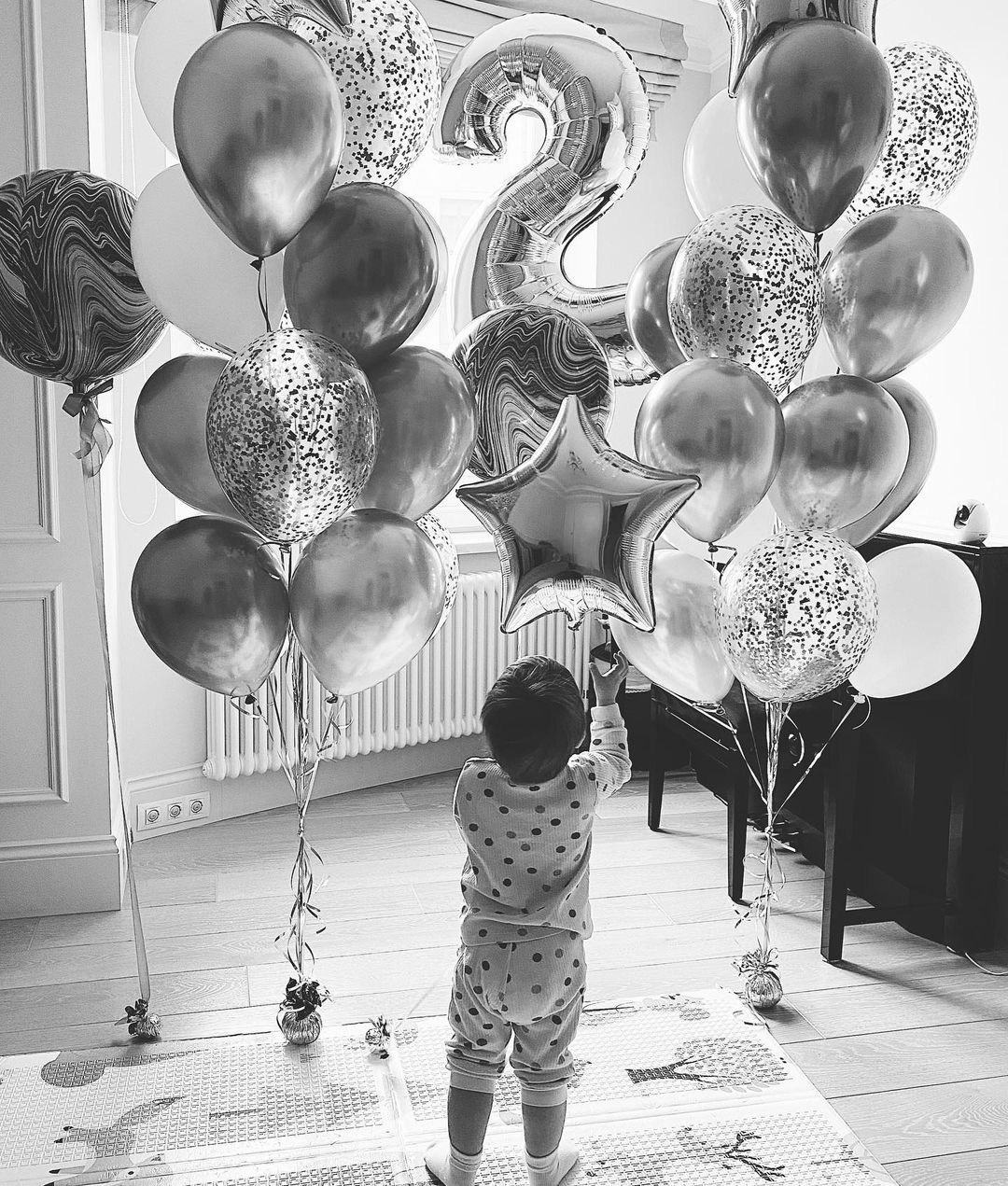 Из суеверия Саша никогда не показывает лицо сына, да и, в общем, снимки его публикует редко. Но сегодня, в день рождения мальчика, решила поделиться радостью с поклонниками. Савельева разместила две фотографии: на первой — пяточки новорожденного Леона, на второй — сегодняшний именинник с интересом разглядывает воздушные шары, которыми украшена в его честь комната. Впрочем, мальчик по-прежнему снят со спины, время показать его лицо еще не пришло.