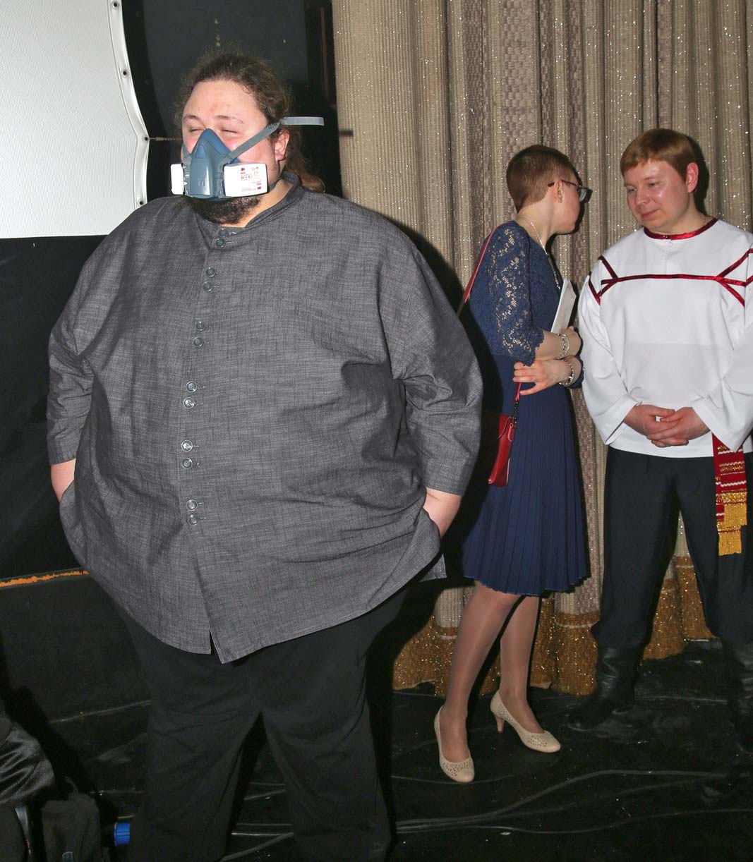 Да, и к чему, собственно, такая грозная форма защиты для вполне приличного публичного места, коим является Дом кино? Понятно, что ограничительные меры в Москве продолжают оставаться на прежнем высоком уровне. Но странная для публичных мест, несколько ужасающая, несуразная маска отпрыска художника вводит окружающих в ступор!