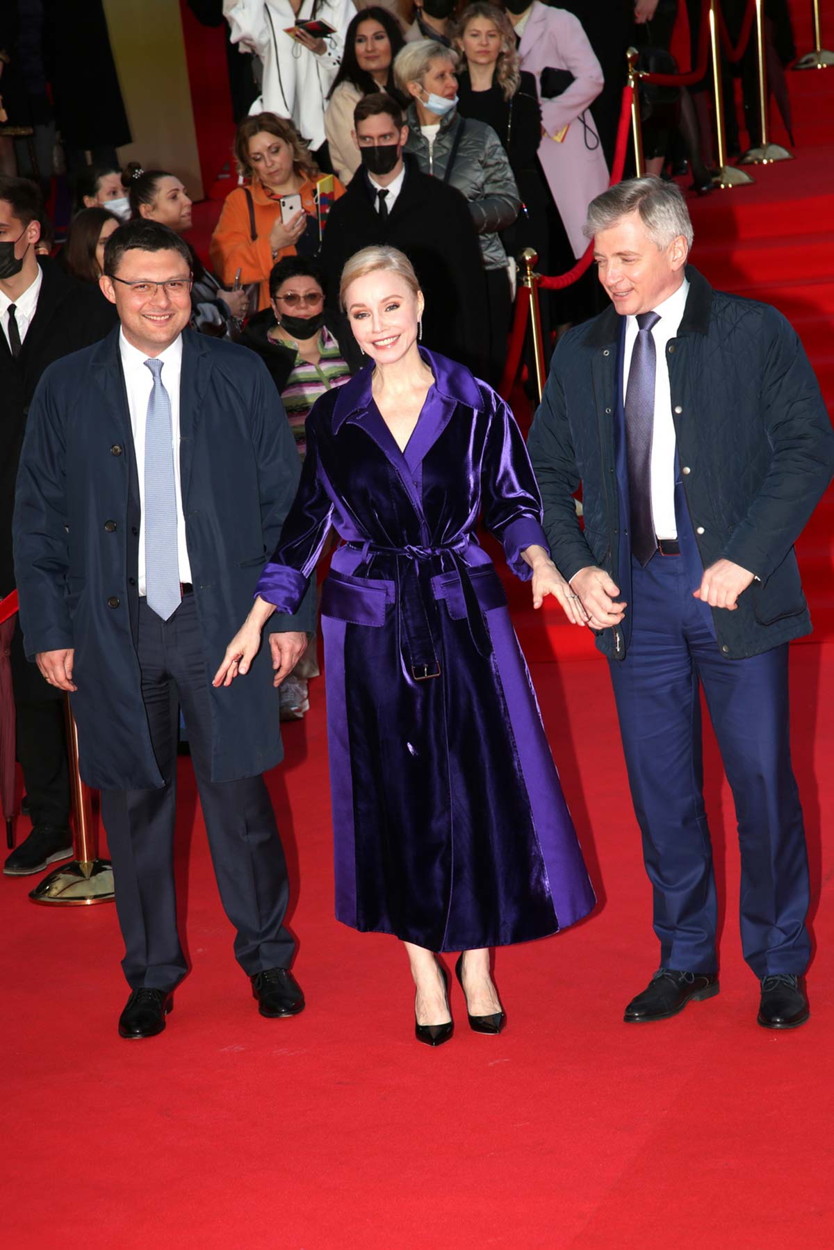 В битве секс-символов до поры до времени все же лидировали Узерли, Екатерина Климова и Кристина Асмус – все в скромном черненьком! А кого им было затмевать? Агату Муцениете в голубом дизайнерском? Главная соперница была только одна – страстная Марина Зудина в очень необычном прикиде – что-то фиолетовое в сочетании с еще более фиолетовым! – Мужики медленно соловели.
