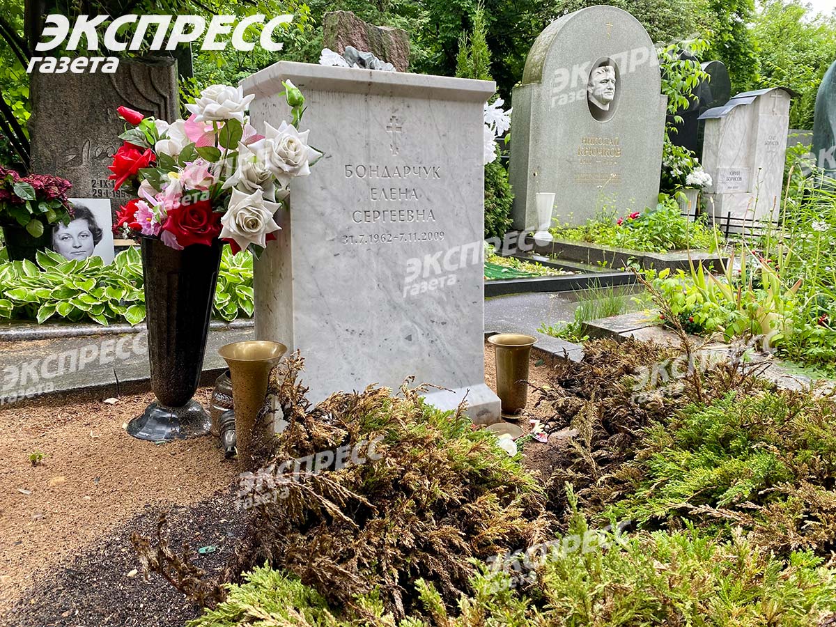 На могиле Алены Бондарчук установлен скромный памятник — маленький куб из белого камня. На нем только имя — Бондарчук Елена Сергеевна и даты: 31.7.1962 — 7.11.2009. Живых цветов на могилу актрисы давно не приносили, а в вазе стоят лишь пластиковые розы. При этом последнее пристанище Алены Бондарчук выглядит ухоженным.