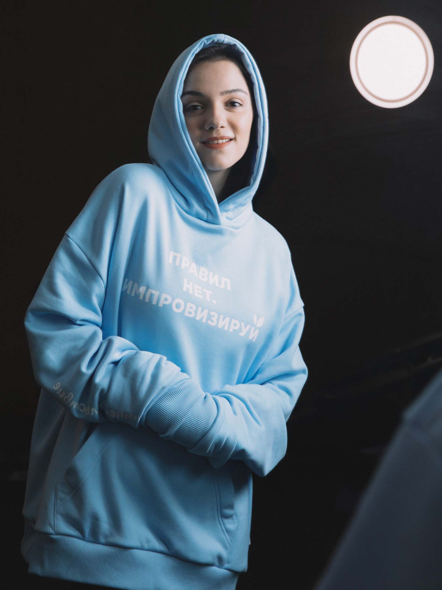 — Создавая капсульную коллекцию, мы хотели напомнить о том, как важно получать удовольствие от процесса. Надписи на худи нанесены зеркально, чтобы каждая девушка, проходя мимо зеркала, могла стать для себя самым лучшим мотиватором и всегда чувствовала поддержку. Знаю, как иногда этого не хватает, — поделилась задумкой коллекции Евгения Медведева.