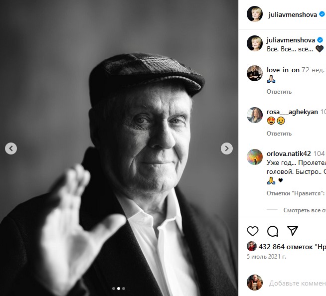 «Не могу сдержать слезы, так больно», «Юлия, соболезную вашей утрате, плачем вместе с вами», «Светлая память», «В это невозможно поверить, как и невозможно унять слезы», — пишут в комментариях поклонники Меньшова.