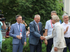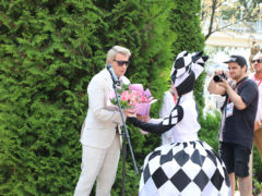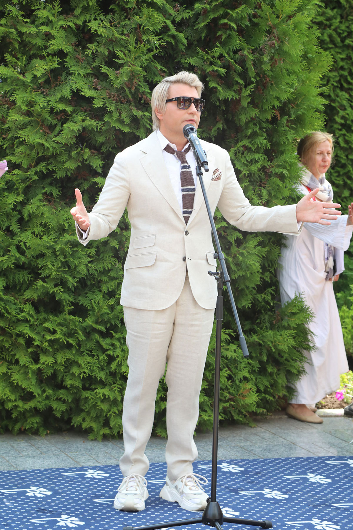 На сей раз знаменитостью, удостоившейся чести быть «увековеченной», стал Николай Басков. Николай отнесся к этой миссии ответственно – пришел заранее, внимательно выслушал все заготовленные речи, посмотрел на выступление юных гимнасток, сам сказал благодарственные слова. А когда ткань с доски открыли, долго около своей плиты стоял, лежал и даже, чего уж греха таить, ее целовал. Все понимающе переглядывались – и в самом деле, не каждый же день доску открывают тебе, любимому.