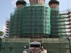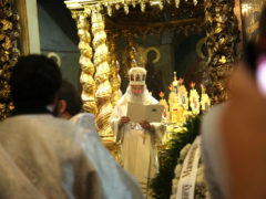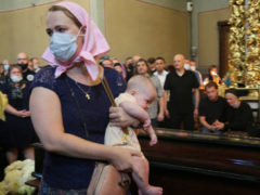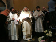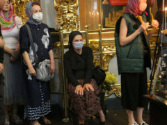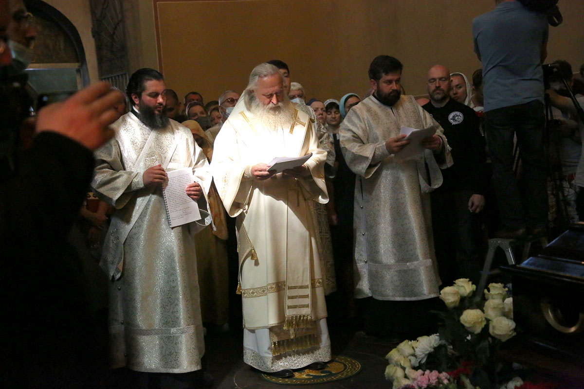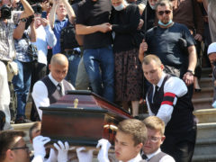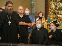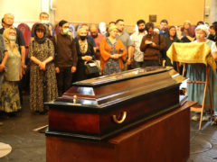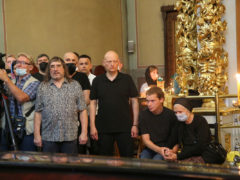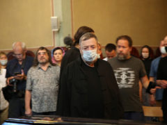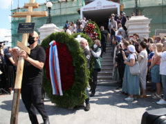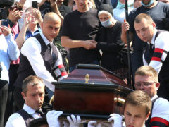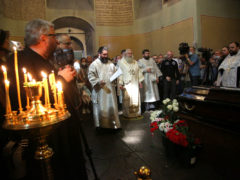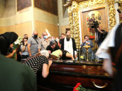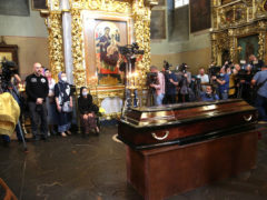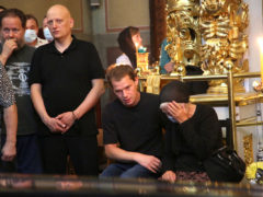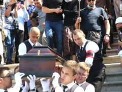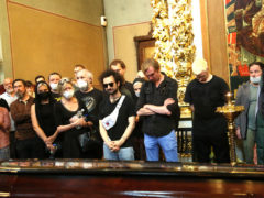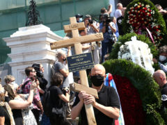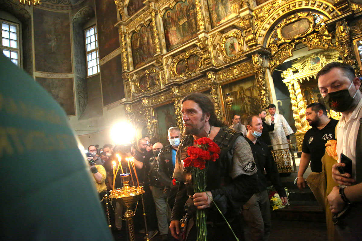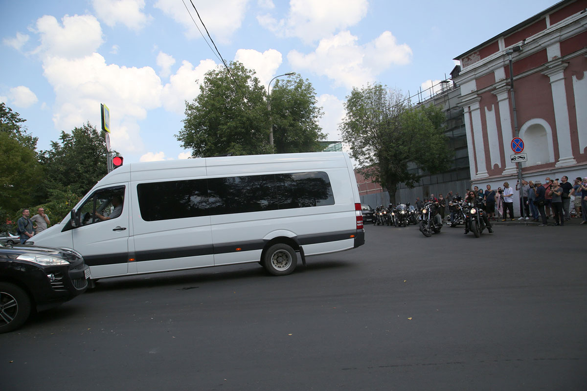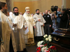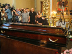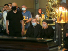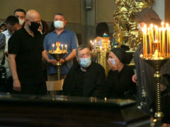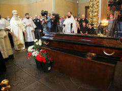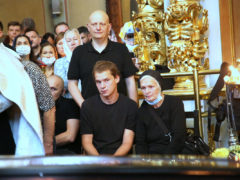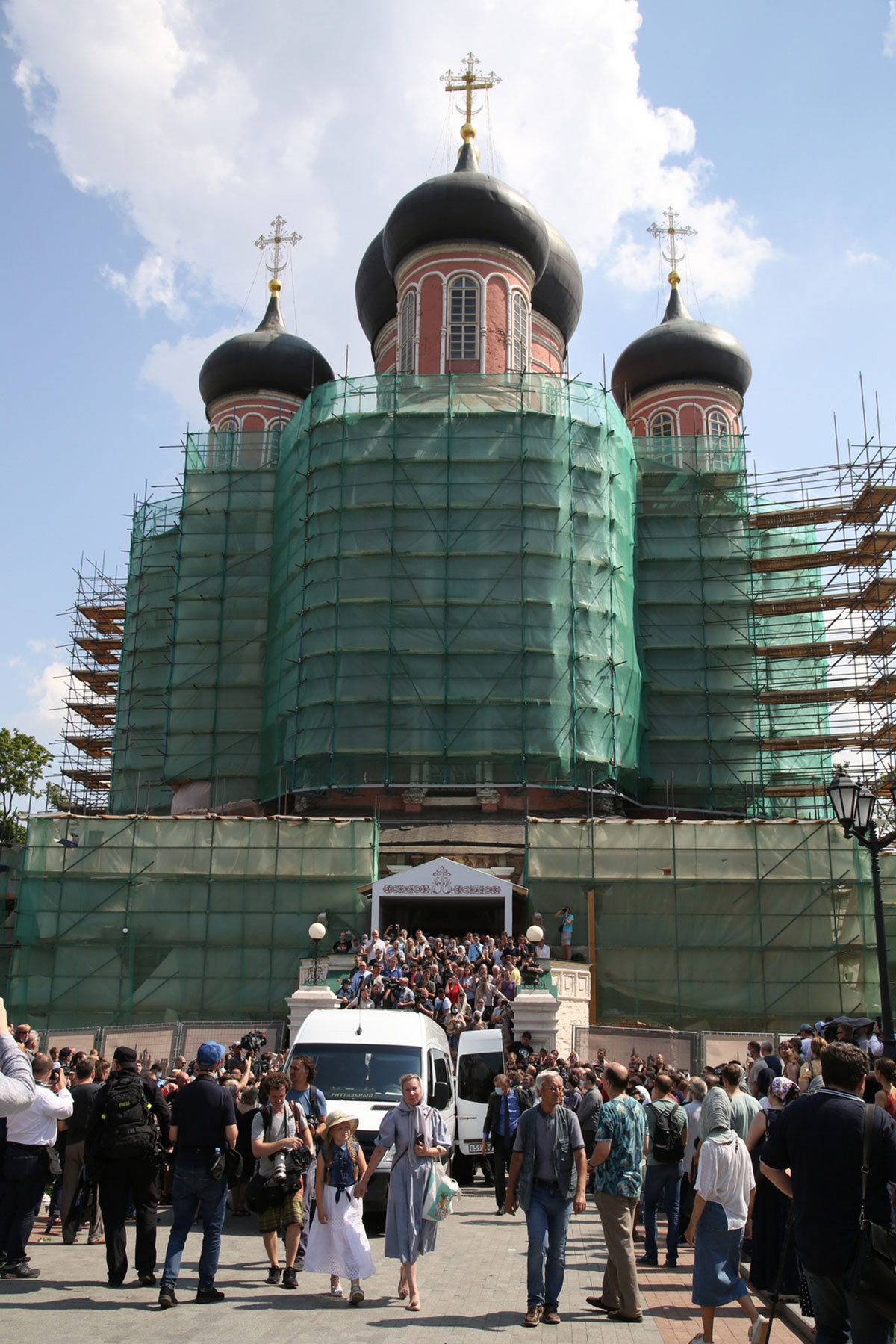 После чина отпевания к гробу выстроилась очередь. Люди подходили и, не боясь эпидемии, целовали крышку домовины,. Правда, распорядитель траурной церемонии то и дело протирал крышку антисептиком.