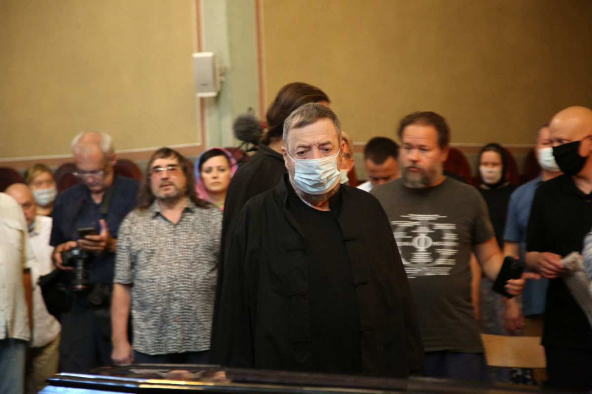 Проводить в последний путь основателя и лидера рок-группы «Звуки Му», запомнившегося по ролям в фильмах «Такси-блюз», «Остров», «Царь», «Нога» и «Шапито-шоу», пришли сотни человек. Среди них были режиссер Павел Лунгин, лидер мотоклуба «Ночные волки» Александр «Хирург» Залдостанов и актер Дмитрий Дюжев. Венки прислали, в том числе, президент России Владимир Путин и Патриарх Московский и всея Руси Кирилл.