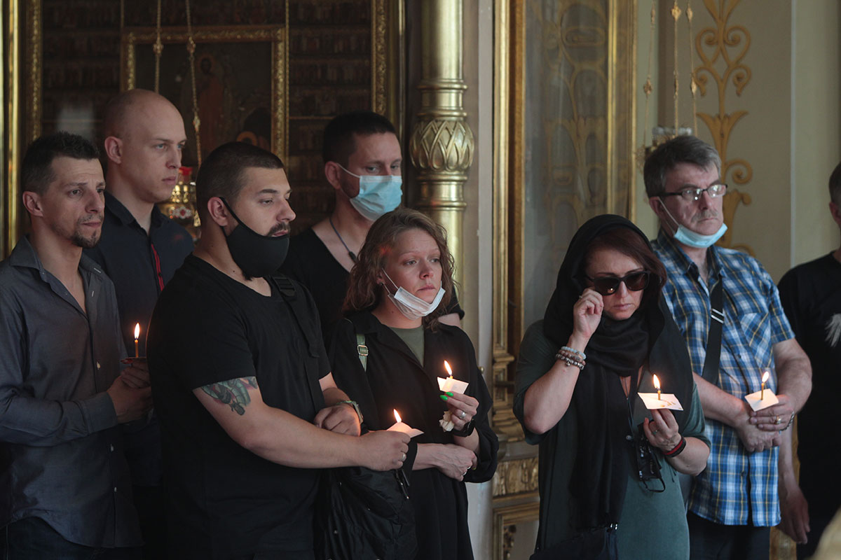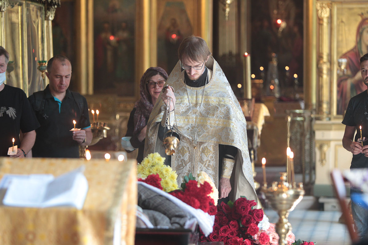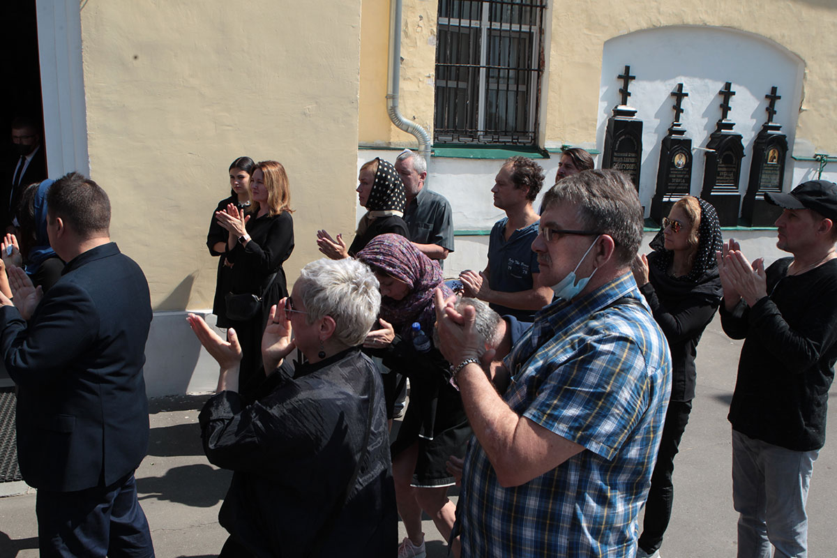 Из храма в последний путь Алексея Мускатина по традиции провожали аплодисментами. Его тело кремировали в Николо-Архангельском крематории.