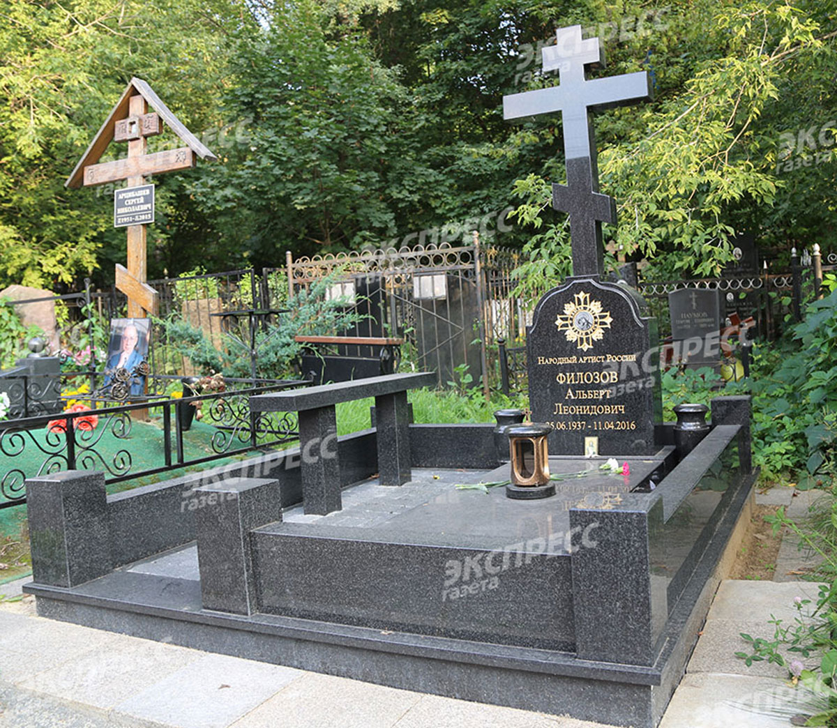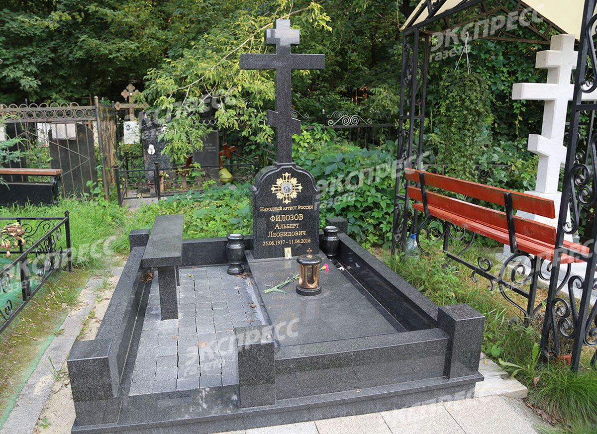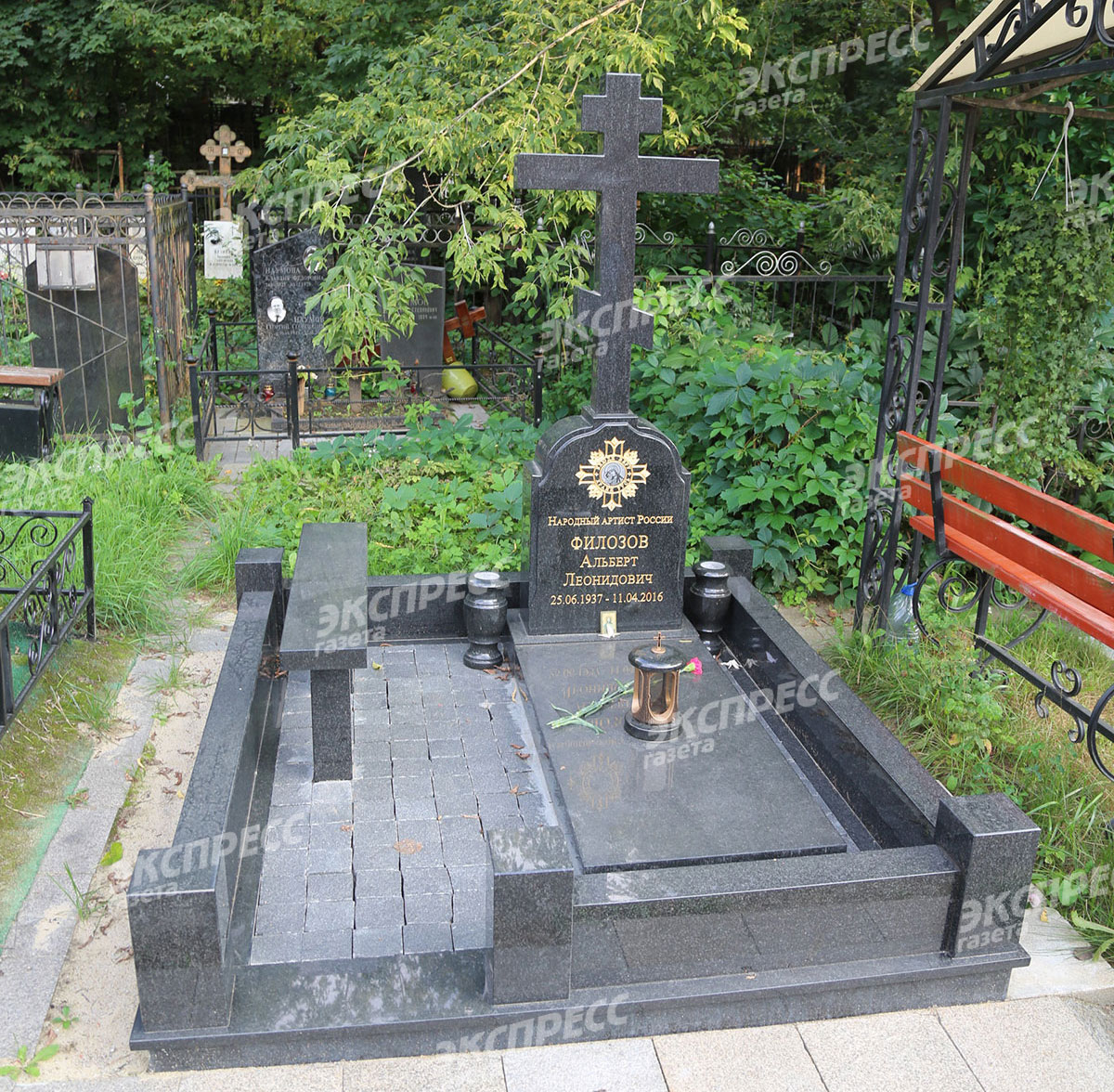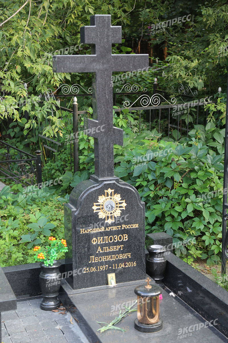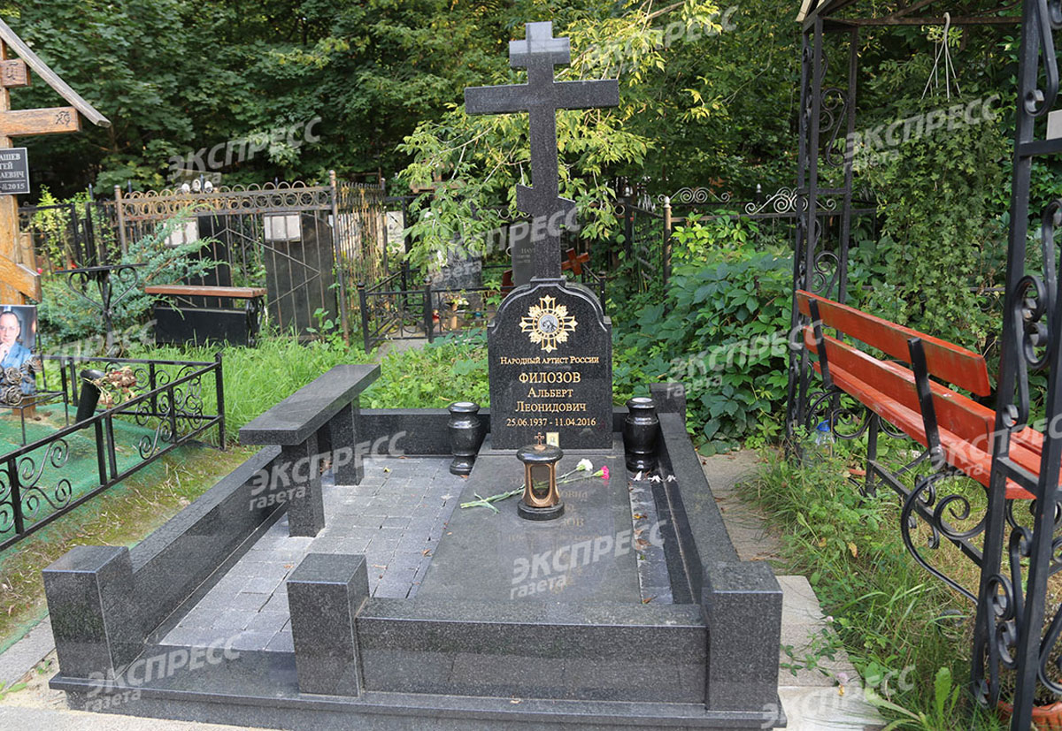 До недавнего времени могила Филозова на Ваганьковском кладбище выглядела сиротской. Потускневший от времени крест с прикрепленной табличкой с фамилией, датами жизни и смерти и небольшой иконкой вызывал оторопь у поклонников, ведь рядом находились величественные надгробия именитым коллегам актера.