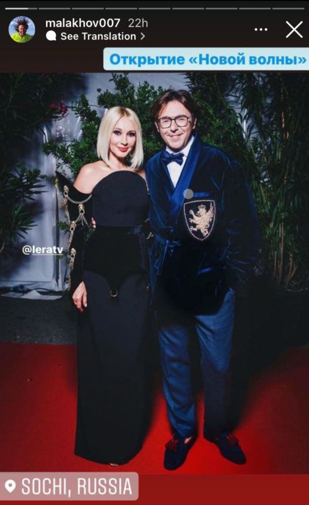 «Два моих любимых телеведущих — Лерочка и Андрюша — пришли в обнимку. Бархатный пиджак с гербом, который размером больше, чем у семьи Мальковых на фасаде дома, намекает, что Андрюшка ещё более знатного происхождения», — написала Лена Миро у себя в .