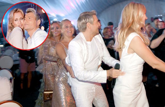 Выплясывая паровозиком знаменитую «летку-енку» Коля Басков так сильно жал за талию Олесю Судзиловскую, что она пожаловалась будто у нее после этого выросли щеки.