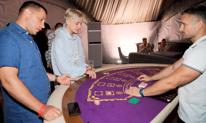 Вечеринку в честь членов жюри устроили в стиле «Казино». За игровым столом попробовал удачу даже 15-летний автор и исполнитель хита «Ты - Москва, я - Питер» Ваня Дмитриенко.