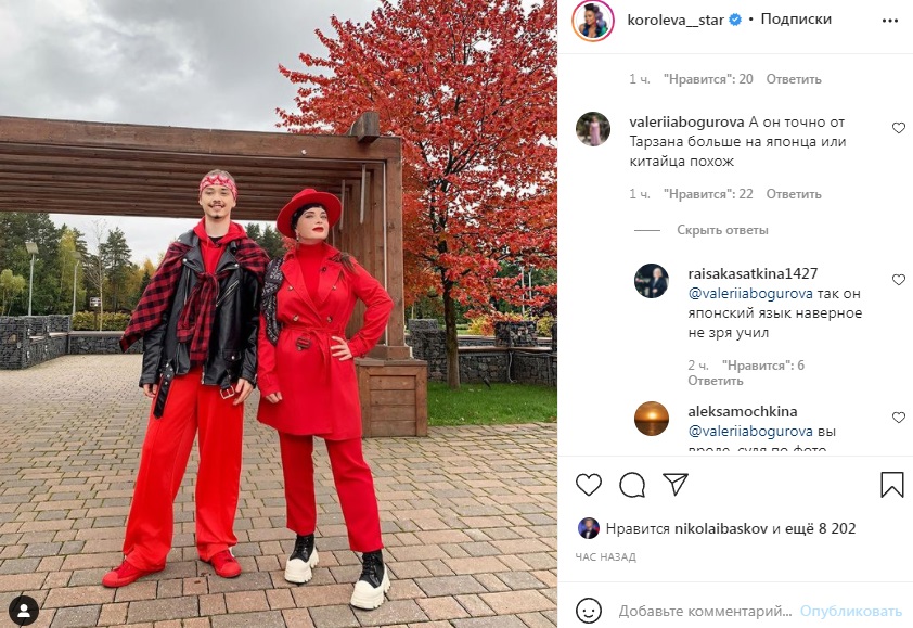 И вот певицу снова заподозрили в обмане. На этот раз подписчики усомнились в том, что 19-летний сын Наташи Королевой действительно рожден от ее законного мужа. Поводом для таких смелых обвинений в адрес звезды стала фотография, которую улыбчивая красотка разместила в личном микроблоге. На снимке она запечатлена рядом с сыном, который решил одеться под стать маме — сделав акцент на красном цвете.